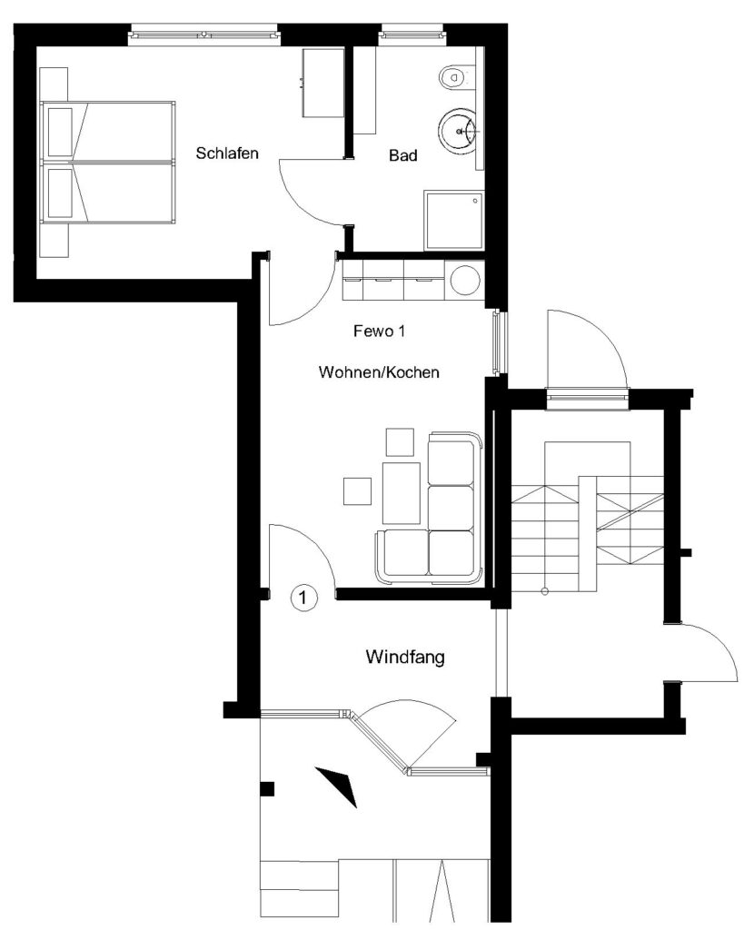 Sie bietet Platz für 1 – 2 Personen (+ 1 Person Schlafsofa).