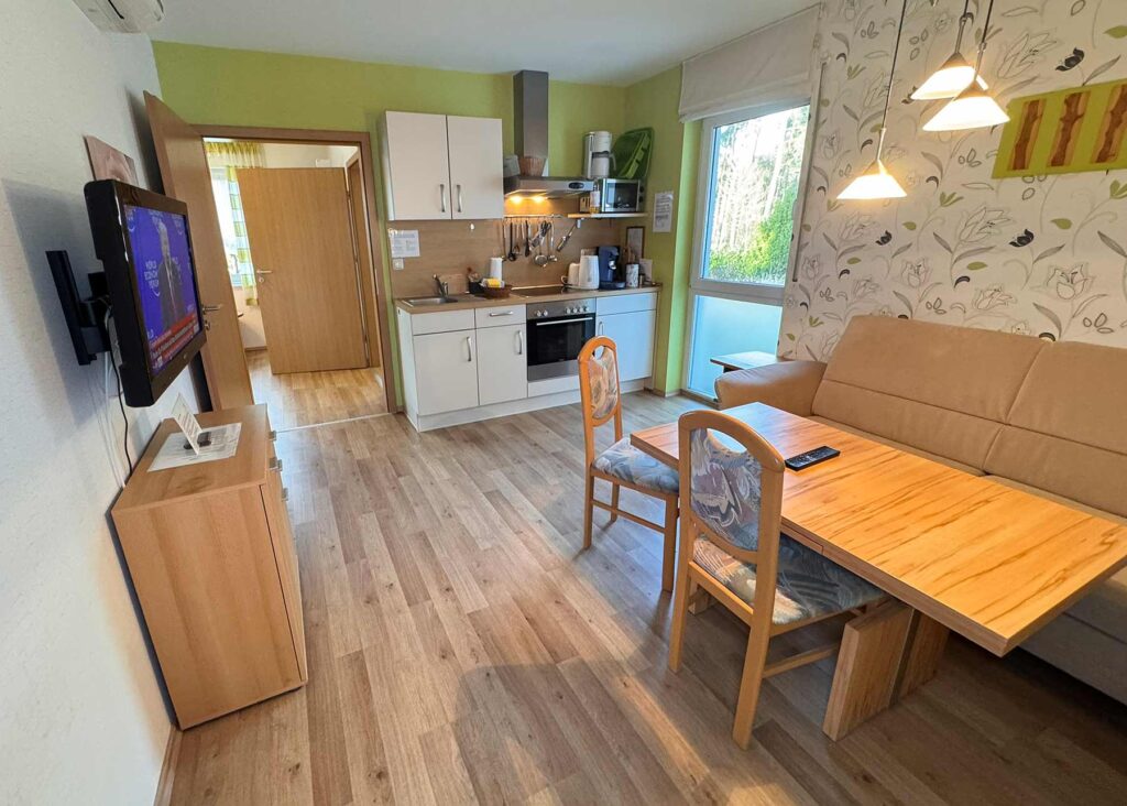 (jeweils 90 x 200cm) - Wohn-/Essbereich mit Schlafsofa (Liegefläche 140 x 200cm) für 1 weitere Person