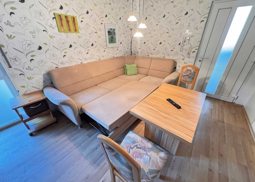 * Schlafgelegenheit für die dritte Person ist das Schlafsofa im Wohn-/Esszimmer (Durchgangsraum für alle Zimmer).