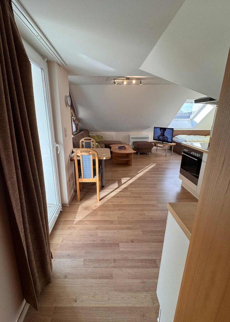 Diese Wohnung ist 40 qm groß und liegt im Dachgeschoss.