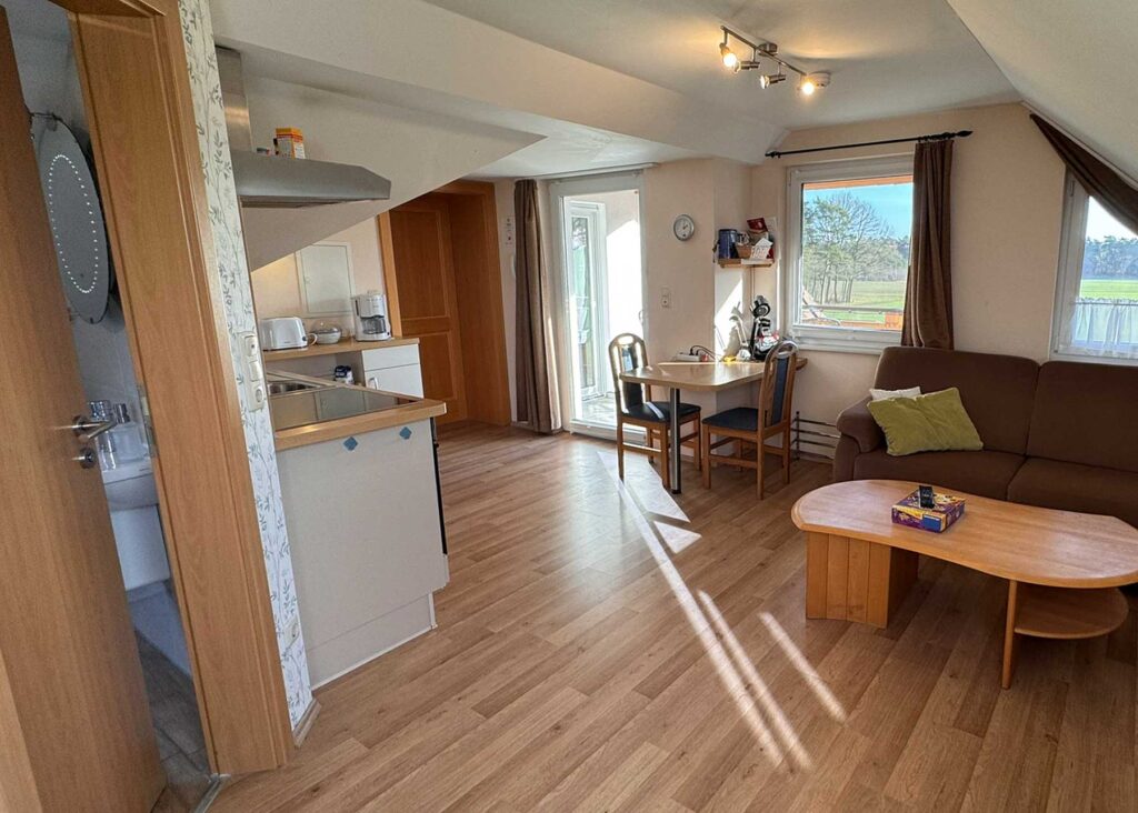 * Schlafgelegenheit für die dritte und vierte Person ist das Bett, bzw. das Schlafsofa im Wohn-/Essbereich (Durchgangsraum für alle Zimmer).